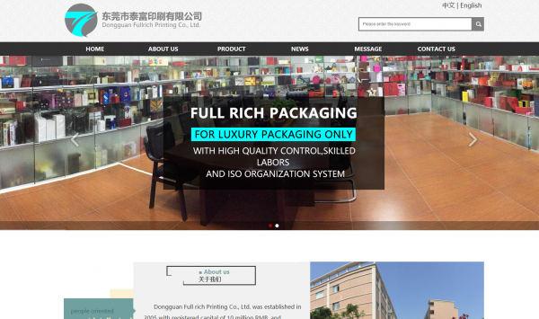 Dongguan Full rich Printing Co., Ltd. was established in 2005 with registered capital of 10 million RMB, and registered Hong Kong Luxury-only packaging Co., Ltd to develop overseas business. It has passed ISO 9001, ISO 14001 orgalization system and FSC certification.