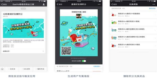 再好的內(nèi)容和產(chǎn)品也需要一定粉絲基數(shù)來傳播,我們通過邀請海報的功能,為每位粉絲提供一個專屬的積分海報,通過Ta的社交影響力邀請好友關(guān)注得到積分。被邀請的好友也能繼續(xù)邀請其他好友,通過社交媒體的裂變傳播很快能帶來粉絲數(shù)的指數(shù)增長。而積分僅能兌換易極優(yōu)產(chǎn)品,也讓增加的粉絲更加精準并增加品牌曝光。