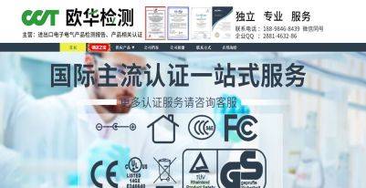 深圳市歐華檢測技術有限公司(Shenzhen CCT Testing Technology Co., Ltd.)是一家專門從事進出口電子電氣產品的電磁兼容(EMC)、安全(SAFETY),無線電射頻(R&TTE),化學測試,ISO體系認證輔導,技術咨詢與認證綜合服務的獨立第三方專業(yè)檢測認證機構。主要提供:歐盟CE認證 化妝品CPNP, 美國FDA認證 FCC認證 沙特SASO認證 COC符合性聲明 MSDS報告 RoHS檢測、REACH檢測 、CPC(CPSC)測試 CP65 加州65,質檢報告,ISO9001等檢測認證服務。