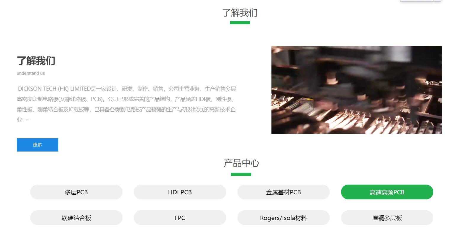 DICKSON TECH (HK) LIMITED是一家設(shè)計(jì)、研發(fā)、制作、銷(xiāo)售,公司主營(yíng)業(yè)務(wù):生產(chǎn)銷(xiāo)售多層高密度印制電路板(又稱(chēng)線路板、PCB)。公司已形成完善的產(chǎn)品結(jié)構(gòu),產(chǎn)品涵蓋HDI板、剛性板、柔性板、剛?cè)峤Y(jié)合板及IC載板等,已具備各類(lèi)別電路板產(chǎn)品較強(qiáng)的生產(chǎn)與研發(fā)能力,的高新技術(shù)企業(yè)。