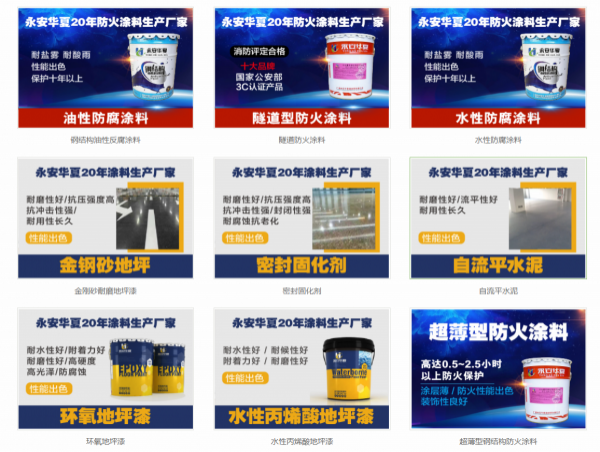 廣西永安華*新材料有限公司,前身為北京永安華夏科技有限公司,成立于 1999 年,是一家專業(yè)從事高級涂料研發(fā)、生產(chǎn)、銷售和施工,并擁有自主知識產(chǎn)權(quán)的高科技企業(yè),其擁有北方較大的生產(chǎn)基地及南方現(xiàn)代化生產(chǎn)基地(正在建設(shè)中),產(chǎn)品涵蓋鋼結(jié)構(gòu)防腐涂料、鋼結(jié)構(gòu)防火涂料、內(nèi)外墻高級涂料、地坪漆和干混砂漿五大系列。公司引進(jìn)國際先進(jìn)的涂料生產(chǎn)線,擁有全不銹鋼結(jié)構(gòu)反應(yīng)設(shè)備和操作平臺,國內(nèi)領(lǐng)先的除塵設(shè)備, 無障礙投料和無塵灌裝設(shè)備,生產(chǎn)能達(dá)到鋼結(jié)構(gòu)防腐漆 9 萬噸,鋼結(jié)構(gòu)防火涂料 20 萬噸,水性乳膠漆 10 萬噸,干粉砂漿 8 萬噸,真石漆 8 萬噸總投資 1.5 億人民幣,屬國內(nèi)大型建材生產(chǎn)企業(yè)。永安華夏擁有完善的產(chǎn)品研發(fā)體系,質(zhì)量管理體系,產(chǎn)品制造體系,市場營銷體系,是中國最先進(jìn)的涂料生產(chǎn)基地之一,率先在行業(yè)內(nèi)通過了 IS0900I 國際質(zhì)量管理體系認(rèn)證 ,IS01400 國際環(huán)境管理體系認(rèn)證, 中國環(huán)境標(biāo)志產(chǎn)品認(rèn)證、保證了公司產(chǎn)品質(zhì)量的領(lǐng)先性和穩(wěn)定性。