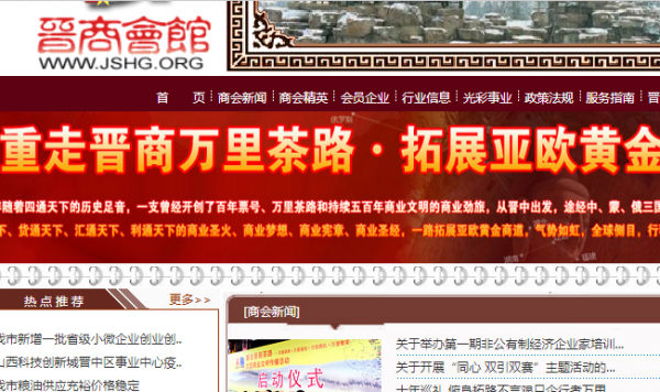 晉*會館網(wǎng)站是由晉中市工商業(yè)聯(lián)合會、晉中市總商會主辦,山西晉商會館有限責任公司承辦,并制作維護。晉中市工商業(yè)聯(lián)合會成立于2002年7月,簡稱晉中市工商聯(lián),是中共晉中市委領(lǐng)導的晉中工商界組成的人民團體和商會組織,是黨委和政府聯(lián)系非公有制經(jīng)濟人士的橋梁紐帶,是政府管理非公有制經(jīng)濟的助手。本會工作的指導思想是:高舉中國特色社會主義偉大旗幟,以鄧小平理論和“三個代表”重要思想為指導,深入貫徹落實科學發(fā)展觀,緊緊圍繞市委、政府“加快科學發(fā)展,構(gòu)建和諧晉中”的戰(zhàn)略目標,按照充分尊重、廣泛聯(lián)系、加強團結(jié)、熱情幫助、積極引導的工作方針,創(chuàng)新工作機制,實現(xiàn)工商聯(lián)宏觀職能與具體操作的有機結(jié)合,切實提高工商聯(lián)履行職能和發(fā)揮作用的能力,引導非公有制經(jīng)濟人士健康成長,促進非公有制經(jīng)濟健康發(fā)展,為晉中經(jīng)濟充滿活力,城市富有魅力,文化更加繁榮、社會更加和諧做貢獻。