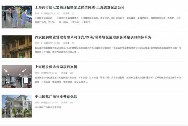 上海鵬發(fā)保潔服務(wù)有限公司選用我司企業(yè)家政保潔行業(yè)的網(wǎng)站優(yōu)化產(chǎn)品,其SEO關(guān)鍵詞有 上海保潔公司,上海徐匯保潔公司,靜安保潔公司,普陀保潔公司,閔行保潔公司,寶山保潔公司,嘉定保潔公司,浦東保潔公司,松江保潔公司,青浦保潔公司,奉賢保潔公司,上海外墻清洗,上海沙發(fā)清洗,水箱清洗。其特點(diǎn)是用很合適的展示方式、展示效果、站點(diǎn)框架,把客戶及其用戶很關(guān)心的問(wèn)題突出表現(xiàn);并以簡(jiǎn)潔明朗的設(shè)計(jì)風(fēng)格,清晰展現(xiàn)公司水平實(shí)力,確保一秒抓住目標(biāo)用戶眼球,給用戶留下良好的第一印象。上海鵬發(fā)保潔服務(wù)有限公司成立于2011年,是經(jīng)閔行區(qū)市場(chǎng)監(jiān)督管理局審核的有資質(zhì)的公司,其統(tǒng)一社會(huì)信用代碼: 913101125791289185。公司地址:上海漕寶路2888弄66號(hào)。
