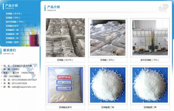 如東華*化工有限公司是經(jīng)江蘇省人民政府批準(zhǔn)的中外合作企業(yè),目前擁有固定資產(chǎn)200萬(wàn)美元,現(xiàn)有職工100多名(其中專業(yè)技術(shù)人員20多名,具有高級(jí)職稱人員5名),占地面積2萬(wàn)平方米,我們與上海同濟(jì)大 學(xué)合作開發(fā)了以黃磷(p4)為原料生產(chǎn)的亞磷酸和有 機(jī)磷系列產(chǎn)品。