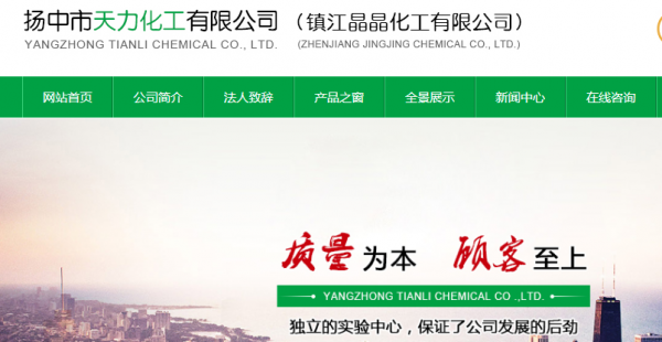 揚中市天力化工有限公司座落于市化工開發(fā)園區(qū)內(nèi),風(fēng)景秀麗的揚子江畔、黃金水道從腳步下流過,東連 揚中大道、直通揚中二橋,水陸交通便利。公司成立于千禧之年,新興企業(yè)充滿活力,企業(yè)決策層十分注重引進(jìn)技術(shù)及人才,同時依靠自身力量,大力開發(fā)精細(xì)化學(xué)新品種,發(fā)展勢頭較為喜人。目前,企業(yè)擁有120多員工,專業(yè)技術(shù)人員20多人產(chǎn)品擁有三大系列、二十多個品種。