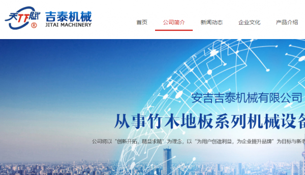 吉聚泰機械有限公司(原安吉吉泰機械有限公司)是一家從事竹木地板系列機械設(shè)備制造銷售于一體的專業(yè)公司,公司生產(chǎn)的“天賦”牌機械產(chǎn)品,被評為浙江省湖州市名牌產(chǎn)品,“天賦”牌商標(biāo)是浙江省湖州市著名商標(biāo)。產(chǎn)品有常規(guī)、側(cè)壓、平壓竹地板,竹、木重組地板、竹木復(fù)合地板及竹百葉窗、竹地毯、竹簽類等系列設(shè)備。從胚板生產(chǎn)到企口、砂光、油漆成品板的生產(chǎn)機械,形成了一整套地板流水設(shè)備,同時為用戶提供廠區(qū)規(guī)劃、設(shè)備安裝及技術(shù)輔導(dǎo)等支持。