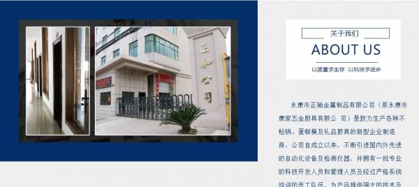 永康市正*金屬制品有限公司(原永康市康家五金廚具有限公司)是致力生產(chǎn)各種不粘鍋、蛋糕模及禮品廚具的新型企業(yè)制造商,公司自成立以來,不斷引進(jìn)國內(nèi)外先進(jìn)的自動化設(shè)備及檢測儀器,并擁有一批專業(yè)的科技開發(fā)人員和管理人員及經(jīng)過嚴(yán)格系統(tǒng)培訓(xùn)的員工隊伍,為產(chǎn)品提供強大的技術(shù)及品質(zhì)保證,強力打造中國廚具業(yè)乃至世界廚具業(yè)的高端品牌,現(xiàn)公司產(chǎn)品已遠(yuǎn)銷國外,英國、美國等歐美發(fā)達(dá)國家地區(qū),并在同一行業(yè)中享有較高的聲譽。