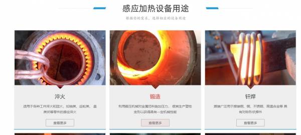 目前已研制一系列高頻、中頻、超音頻、超高頻感應(yīng)加熱電源。以及高頻淬火機(jī)床,中頻熔煉,中頻鍛造爐,超音頻退炎機(jī),超音頻鍛造爐,釬焊機(jī),塑焊機(jī),熱彎?rùn)C(jī)等多種專(zhuān)業(yè)設(shè)備,廣泛應(yīng)用在金屬加工、五金塑料、汽車(chē)、摩托車(chē)、家電、水暖、潔具、制冷、通信、醫(yī)療器材、兵器工業(yè)等需熱源設(shè)備的行業(yè)之退火、淬火、焊接、透熱成型、熱配合等工藝。