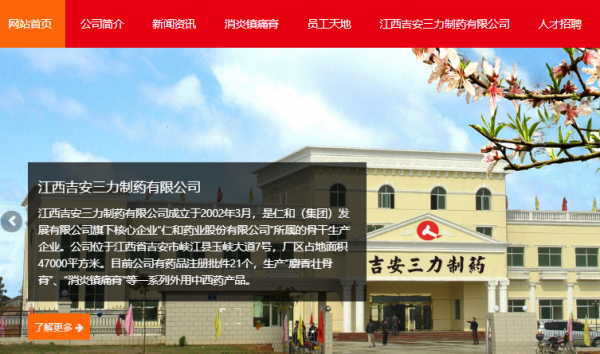 我們公司與江西吉安三*制藥有限公司合作中,對(duì)這個(gè)公司所經(jīng)營的中西藥品這個(gè)行業(yè)提供了網(wǎng)站開發(fā),與該公司的合作,更多的客戶讓我們公司為其提供網(wǎng)站開發(fā),通過每一次合作,我們公司不斷完善自己,同時(shí)希望合作伙伴在經(jīng)營的路上越來越好。
