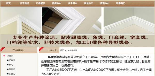 公司集制造、開發(fā)設(shè)計(jì)、銷售和服務(wù)于一體,設(shè)備先進(jìn),技術(shù)力量雄厚,供應(yīng)各種實(shí)木和科技木踢腳線,角線,頂線,門套線等,同時(shí)根據(jù)客戶的特殊要求,加工定做各類異形線條,產(chǎn)品健康環(huán)保,不變形,不開裂,免底漆省人工,省材料,是目前市場(chǎng)上新型的線條。我司產(chǎn)品已銷往世界市場(chǎng)和國(guó)內(nèi)各地區(qū),年銷售額超2.5億人民幣。在全體員工的不懈努力下,公司不斷的完善和發(fā)展,因?yàn)閷W?,所以專業(yè),產(chǎn)品也受到更多的國(guó)內(nèi)外客戶的青睞和好評(píng)。我司相繼被評(píng)為山東省林業(yè)龍頭企業(yè),山東曹縣十強(qiáng)企業(yè),菏澤市優(yōu)秀企業(yè)家單位,菏澤市外貿(mào)出口50強(qiáng)企業(yè),出口海關(guān)AA類管理企業(yè)等多項(xiàng)殊榮。