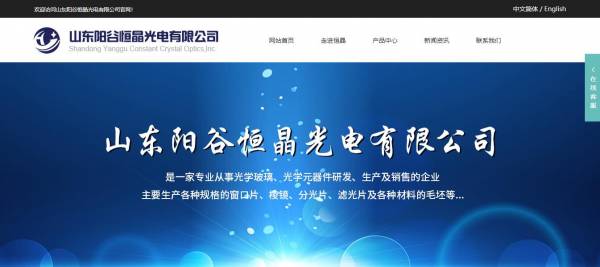 山東陽谷恒晶光電有限公司選用我司企業(yè)電子元器件行業(yè)的網(wǎng)站優(yōu)化產(chǎn)品,其SEO關(guān)鍵詞有 光學(xué)玻璃窗片,棱鏡,透鏡,濾光片,晶體,毛坯,山東陽谷恒晶光電有限公司。其特點是用很合適的展示方式、展示效果、站點框架,把客戶及其用戶很關(guān)心的問題突出表現(xiàn);并以簡潔明朗的設(shè)計風(fēng)格,清晰展現(xiàn)公司水平實力,確保一秒抓住目標(biāo)用戶眼球,給用戶留下良好的第一印象。山東陽谷恒晶光電有限公司成立于2006年,是經(jīng)陽谷市市場監(jiān)督管理局審核的有資質(zhì)的公司,其統(tǒng)一社會信用代碼:91371521663521878C 。公司地址:山東陽谷祥光經(jīng)濟(jì)開發(fā)區(qū)。