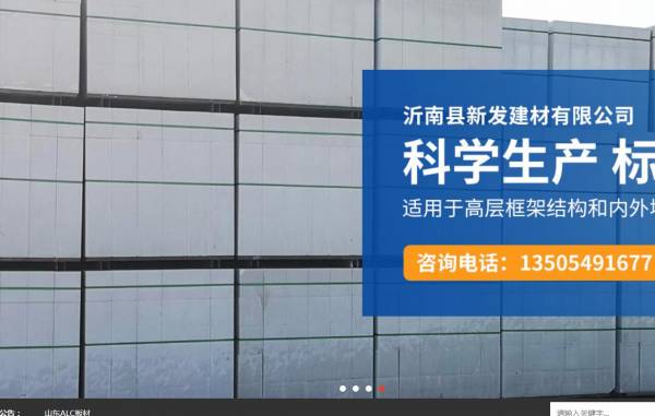 沂南縣新*建材有限公司選用我司企業(yè)建筑建材行業(yè)的網站優(yōu)化產品,其SEO關鍵詞有 山東ALC板材,ALC板材廠家,臨沂砂加氣混凝土砌塊,臨沂加氣混凝土墻板,沂南縣新*建材有限公司。其特點是用很合適的展示方式、展示效果、站點框架,把客戶及其用戶很關心的問題突出表現(xiàn);并以簡潔明朗的設計風格,清晰展現(xiàn)公司水平實力,確保一秒抓住目標用戶眼球,給用戶留下良好的第一印象。沂南縣新*建材有限公司成立于2011年,是經沂南市市場監(jiān)督管理局審核的有資質的公司,其統(tǒng)一社會信用代碼:913713215**509563R 。公司地址:山東省臨沂市沂南縣經濟開發(fā)區(qū)開元路18號。