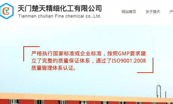 天門楚天精細(xì)化工有限公司位于湖北省江漢平原,創(chuàng)始于1997年,其前身為仙桃市楚天精細(xì)化工廠,是一家專業(yè)從事醫(yī)藥中間體研發(fā)、生產(chǎn)、銷售一體的醫(yī)藥化工企業(yè)。2011年,作為天門市招商引資重點企業(yè)進(jìn)駐岳口工業(yè)園,經(jīng)過幾年的開拓與發(fā)展,公司生產(chǎn)規(guī)模不斷擴(kuò)大,綜合實力不斷增強(qiáng)。公司主要產(chǎn)品:2-氯-1,4萘醌、4(4-氯苯基)環(huán)已烷甲酸、2,7-二氯芴、2-乙基-1,3-環(huán)戊二酮、2-甲基-1,3-環(huán)戊二酮、6-甲氧基-1奈滿酮等。其中2-氯-1,4萘醌和4(4-氯苯基)環(huán)已烷基-1-甲酸為生產(chǎn)阿托伐醌的兩個重要中間體,阿托伐醌系世衛(wèi)組織指定治療愛滋病藥物。2,7-二氯芴為抗瘧疾藥物苯芴醇的重要中間體。產(chǎn)品憑借高技術(shù)、高質(zhì)量銷往國內(nèi)外大、中型制藥企業(yè)及世衛(wèi)組織等,享有很高聲譽(yù)。公司中、高級技術(shù)人員占20%,具備年生產(chǎn)能力:2-氯-1,4-萘醌100噸,4-(4-氯苯基)環(huán)已烷基-1-甲酸50噸,2,7-二氯芴200噸,D環(huán)系列產(chǎn)品45噸。公司產(chǎn)品嚴(yán)格執(zhí)行國家標(biāo)準(zhǔn)或企業(yè)標(biāo)準(zhǔn),按照GMP要求建立了完整的質(zhì)量保證體系。通過了ISO9001:2008質(zhì)量管理體系認(rèn)證,2-氯-1,4-萘醌,4-(4-氯苯基)環(huán)已烷基-1-甲酸通過了歐盟審計。