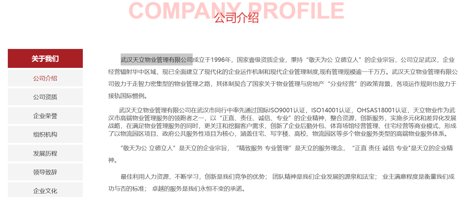 武漢天立物業(yè)管理有限公司網(wǎng)站建設(shè)案例