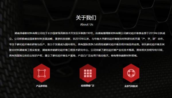 湖南澤睿新材料有限公司位于長(zhǎng)沙國(guó)家級(jí)高新技術(shù)開發(fā)區(qū)環(huán)聯(lián)路190號(hào),由湖南博翔新材料有限公司碳化硅纖維事業(yè)部于2019年分拆成立。公司積極響應(yīng)國(guó)家新材料發(fā)展戰(zhàn)略,秉承科技創(chuàng)新,自2010年以來(lái),與中南大學(xué)碳化硅纖維復(fù)合材料研究所開展“產(chǎn)、學(xué)、研”合作,專注于碳化硅纖維的研制與生產(chǎn),致力于發(fā)展成為國(guó)內(nèi)領(lǐng)先、具有國(guó)際競(jìng)爭(zhēng)力的高性能碳化硅纖維及相關(guān)制品供應(yīng)商。依托碳化硅纖維及其復(fù)合材料湖南省工程實(shí)驗(yàn)室、湖南省含鈹碳化硅纖維工程技術(shù)研究中心,公司突破了碳化硅纖維產(chǎn)業(yè)化技術(shù)瓶頸,擁有相關(guān)發(fā)明專利10項(xiàng),具有我國(guó)獨(dú)立的自主知識(shí)產(chǎn)權(quán),建立了碳化硅纖維生產(chǎn)基地,產(chǎn)品已廣泛應(yīng)用于航空航天、核電等熱端新材料領(lǐng)域。