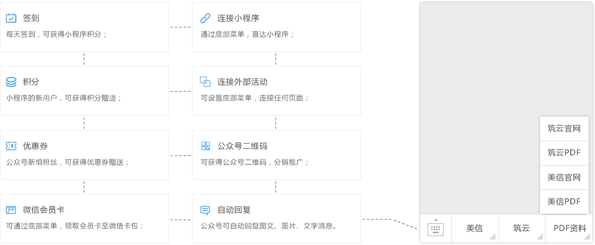 臺(tái)接口,如:微官網(wǎng)、微商城、微活動(dòng)、